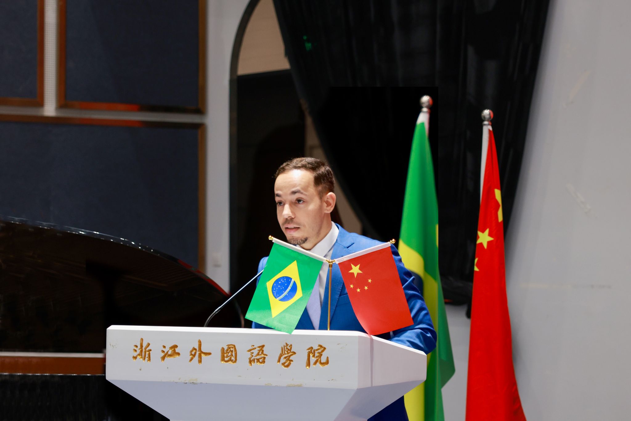 Zhang Liang and Yao Min, Vice Presidents and Members of the Party Committee, attended the event andmadetheir remarks. Daniel Melo, President of the Federal University of Rio Grande do Norte in Brazil, addressed the audience online. Other attendees included Claudio Roja, former Ambassador of Chile and now foreign associate professor at ZISU, Cultural Consul Paulo Henrique and Deputy Media Consul Marília Cristina from the Brazilian Consulate General in Shanghai, and special guest Alexandre Lunsqui, a Brazilian composer and professor at the State University of São Paulo. The Capoeira Mandinga Hangzhou offered a special performance. More than 200 faculty and students participated in the event.