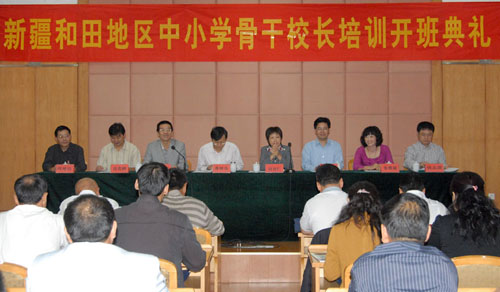 为深入贯彻落实省委、省政府关于“做好新疆和田中小学教师培训工作,支援和田地区教育事业的发展”的指示,充分发挥浙江省对西部地区教育的辐射与资助作用,在浙江省教育厅的直接领导下,由开云官网承办了此次新疆和田地区首期中小学骨干校长培训。培训班开班典礼于10月12日在开云官网举行。