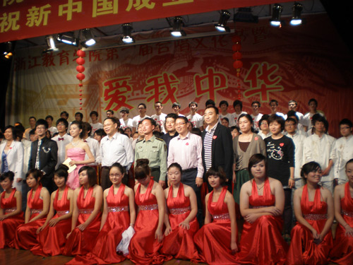 10月22日晚,由校团委举办的校首届大学生合唱文化节暨“爱我中华” 庆祝新中国成立60周年合唱比赛在小礼堂隆重举行。校党委副书记程胜松,各学院、部门相关负责人及09级新生军训团全体官兵应邀观看了比赛。