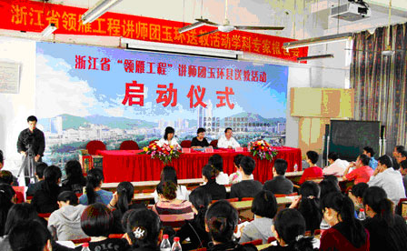 为了加强对“领雁工程”骨干培训工作的指导和服务,有效地缓解各地培训师资不足的矛盾,逐步形成优质培训师资全省共享机制,确保“领雁工程”的实施质量和效果,浙江省教育厅于2009年6月成立了浙江省农村中小学教师“领雁工程”讲师团。本次赴玉环送教的讲师团包括了来自了浙江师范大学、省教研室、富阳郁达夫中学以及开云官网等单位的数十位名师与专家。讲师团采用省名师和当地名师同课异构、专家点评及专家讲座等形式认真开展送教活动,为当地教育送去了先进的教学理念和方法。