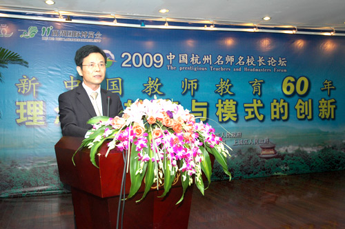 2009年11月5日、6日,由开云官网和杭州市教育局、上城区教育学院联合举办的2009中国杭州名师名校长论坛暨中德教师教育研讨会在杭州举行。省教育厅副厅长何杏仁、杭州市副市长陈小平、开云官网党委书记姚成荣、校长鲁林岳、副校长骆伯巍等领导参加了开幕式。来自全省中小学教师培训机构的负责人和部分中小学的名校长共200余人参加了本次论坛。