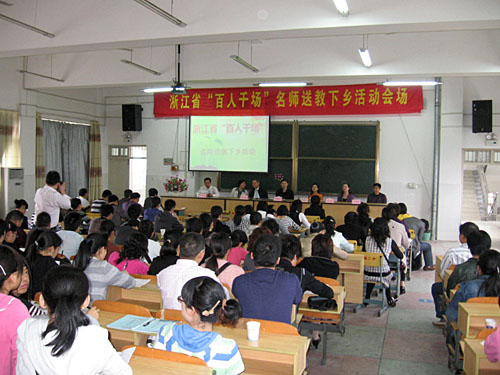 从2006年开始,浙江省教育厅在全省范围组织开展“百人千场”名师送教下乡活动。通过多形式、多渠道,组织百名以上名师,开展上千场农村中小学教师培训活动,使17万农村中小学教师普遍得到高水平高质量的培训服务,并逐步建立起名师支教农村、优质资源共享的长效机制。