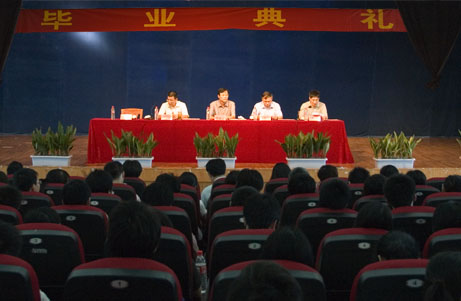 “我谨代表学校党委行政向圆满完成学业、即将告别母校的2009届1121名毕业生表示衷心的祝贺。他们中,有160加入了光荣的中国共产党,有588人次被授予了校三好学生和优秀学生干部荣誉称号,有227人被授予优秀毕业生光荣称号;还有许过同学获得了各种专业技能证书,更有部分同学在全国、全省科技、艺术、体育等项目竞赛中获奖。