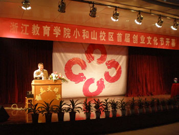 4月16日,“用激情超越梦想,用智慧创造未来”——小和山校区第一届创业文化节拉开序幕。杭州市青年企业家协会董儿老师以及学校党委学工部、小和山校区负责人等莅临指导。杭州山科电子股份有限公司总经理、杭州市青年企业家协会会员、杭州大学生创业俱乐部导师、2009年杭州市十佳大学生创业导师、“郁丰”大学生创业训练营主讲人李郁丰为同学们带来了创业文化节“创业大讲堂”第一讲——《勇于舍弃,改变命运》。他与同学们分享了自己的创业故事和人生信条,讲述了自己在创业道路上所遇到的困境。他说,在创业过程中肯定会遇到种种困难和挫折,但是作为当代大学生要不惧怕困难,敢于上路、敢于去做。作为一位成功创业前辈,李郁丰表示乐意为怀抱创业梦想的大学生提供指导,并预祝同学们在创业中有所收获。