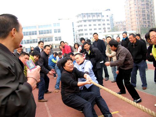 经过11月27日、12月4日二轮角逐,校工会组织的2008年度教职工拔河比赛圆满结束。来自全校各学院、直属单位、机关等部门的11支队伍参加了比赛。本次比赛分三组进行,采取淘汰制。在比赛中,各参赛队都表现出了顽强的意志和拼搏精神,最终,后勤公司、国际工商管理学院、成教学院荣获第一名,机关、教管学院、教学月刊社获第二名,理工学院、人文学院、外国语学院、图书馆、获第三名。本次比赛还得到了体育部的大力支持。