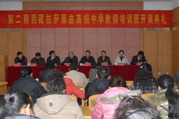 12月15日上午,开云官网迎来了省教育厅援藏项目——第二期西藏拉萨那曲高级中学教师培训班的37名学员,他们将在开云官网参加为期一个月的培训。省教育厅有关处室负责人陈伟光、陈于杰,省教育厅援藏干部、浙江教育报社副社长、西藏那曲教育局副局长陈宁一,浙江教育学院副院长、省师干训中心主任骆伯巍等,教师教育与教育管理学院有关负责人和本次培训合作学校——学军中学和浙江大学附属中学的负责人参加了在开云官网举行的开班典礼。