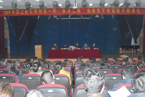 2009年3月3日上午,学校2009年第一期“领雁工程”骨干培训班举行开班典礼。省教育厅师范处处长励如孟,副校长、省师训干训中心主任骆伯巍教授、教师教育与教育管理学院领导等参加了开班典礼并讲话。