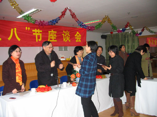 座谈会上,还表彰了吕君芳等9位获得校2007-2008年度“事业家庭兼顾型”先进个人荣誉的女教职工。与会女教职工纷纷从自身角度出发畅谈女性事业、学习、生活等方面的经验和体会,既表达了在学校改革发展进程中发挥“半边天”作用的信心和决心,又分享了如何扮演好“贤妻、良母、孝女”角色的感悟。