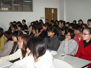 马安东教授首先介绍了当前日语专业学生面临的“学习日语人数众多、竞争日趋激烈”的现状,要求同学们树立持之以恒的学习态度、掌握最适合自己的学习方法,特别强调要通过课堂内外多渠道多方式、循序渐进地加强对日本语言文化、政治、经济、社会生活的认知和了解。在讲座中,马教授以他生动形象的语言、深刻独到的见解,详细阐述了日语朗读语音语调和单词记忆的问题,并把他多年学习和研究日语的经验、在日本学习生活的体会和日本的风土人情等娓娓道来,使大家进一步了解了日本文化,更好地掌握学习日语的方法。