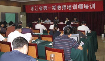 加强培训者培训,提升培训者的自身水平,提高培训质量,有效借鉴国外成熟的培训经验,推动我省教师培训事业的发展,6月10日—14日,“浙江省第一期教师培训师培训”在杭州中油宾馆进行。来自市县师训机构和“领雁工程”省名师名校长实训基地学校的43位老师参加了培训。