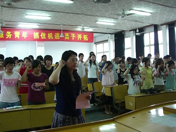 2008年6月17日中午,理工学院党总支举行“迎七一”新党员宣誓暨毕业生党员欢送仪式。学院党总支书记陈晏的领誓,61名新党员在鲜红的党旗下庄严宣誓。学院3个学生党支部86名党员和部分老师参加仪式。