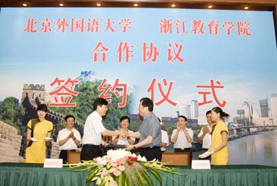 郝平校长在签约仪式上表示,北外党政班子高度重视与浙江教育学院的合作,把合作办学当作一件大事来抓,正式签署协议后,两校将就学科建设规划、人才队伍培养规划、专业设计规划进行认真详细的讨论,北外将抓紧选派最好的骨干教师到浙江教育学院帮助做好课程建设,北外将充分利用自身的办学理念、经验和优质资源,帮助浙江教育学院通过重点突破,在短期内实现目标。