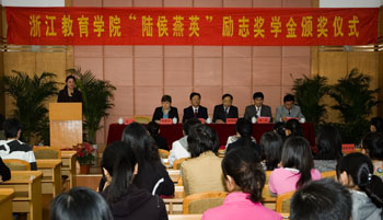 人,获得2008年度“陆侯燕英”励志奖学金的同学,2008年暑期受“陆增镛赴港交流基金”资助赴港交流团的同学,以及辅导员、学生代表参加了颁奖仪式。校学生处处长陈晏主持颁奖仪式。