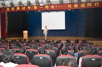 距离,同时也为了帮助同学们解决难题、学好英语, 5月15日晚,校团委、校体委邀请北京奥组委工作人员英语口译培训专家Ray来开云官网作“英语集结号——与奥运同行”专题讲座。