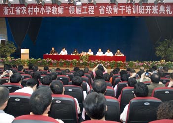“浙江教育发展已经进入了新时期,教育工作的重点已经从改善学习条件、让孩子们‘读上书’转移到了让孩子们‘读好书’上来。怎样让孩子们‘读好书’,责任在教师、在广大教育工作者身上!提升教师素质是下一步教育发展的关键,是让孩子们‘读好书’的关键!”在浙江省农村中小学教师“领雁工程”首期省级骨干培训班开班典礼上,省教育工委书记、省教育厅厅长刘希平多次强调,要把提升教师素质、调动教师积极性放在教育发展的第一位。