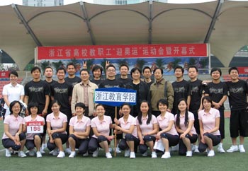 实推进我省高校教职工体育事业的发展和体育健身活动的开展,4月19日上午,省教育厅、省教育工会在浙江工业大学田径场联合举办了浙江省高校教职工“迎奥运”运动会开幕式·趣味运动比赛。