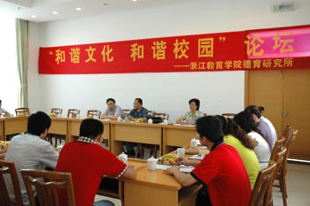 论坛由浙江教育学院人文学院院长、德育研究所顾问龚钢同志主持。学校党委副书记程胜松同志参加并讲话,他首先对德育研究所举办“和谐文化、和谐校园”论坛表示祝贺和支持。事前他阅读了参加论坛交流的所有论文,并给予肯定。他认为,目前在探索加强大学生思想政治教育途径方法的过程中,都在研究建设和谐文化,创建和谐校园这一课题。德育研究所举办这次论坛,对于加强大学生思想政治教育,建设和谐校园具有重要的意义。程书记提出几点希望和要求:一、明确论坛目的,推动和谐文化、和谐校园建设,更好发挥育人的作用;二、通过论坛这个交流研究平台,形成一支研究团队,不断展示新的研究成果;三、已有的成果要逐步形成一定的特色,提高质量,创造条件争取出书;四、将研究成果应用到工作实践中,从而促进大学生思想政治工作。