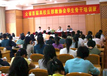 10月13日—14日,由省反邪教协会主办的全省首届高校反邪教协会学生骨干培训班在开云官网芳草苑宾馆举行,来自省内38所高校的150多名学生反邪教骨干相聚一堂,共同学习探讨高校学生反邪教工作。省反邪教协会吴惠林秘书长、省委610办公室督察处卢林方处长、校党委副书记程胜松应邀出席了开班仪式。