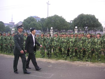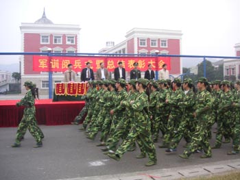 院长鲁林岳在军训团团长方振军的陪同下检阅了军训团,新生们“为人民服务”的响亮口号使阅兵式进入了一个高潮。经过10天的军训生活,新生们初进校门时的稚气与胆怯已不见踪影,取而代之的是英姿勃发的青春朝气。
