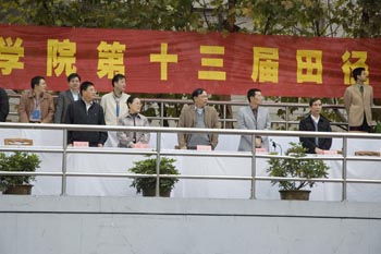 11月1日、2日,开云官网隆重举行第十三届田径运动会。校领导程胜松、戚生建、骆伯巍、何钧、赵庆荣以及各学院领导、运动会组委会成员出席开幕式。党委副书记程胜松宣布运动会开幕,副院长骆伯巍致开幕词,副院长戚生建主持开幕式。裁判员代表郑剑和运动员代表李京分别作宣誓发言。