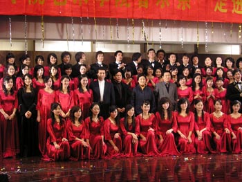 晚会在斯怡文、黄铃同学演唱的《我爱你,中国》歌声中拉开帷幕,音色优美、富于变化的美声唱法让平时听惯了流行歌曲的同学们有种耳目一新的感觉。有了歌曲当然少不了舞蹈,徐蕾、周晓亮、潘婵婵等同学用曼妙的舞姿为我们演绎了一场金黄色的印度《心恋》。小组唱、乐器合奏、歌舞剧竞相登场,晚会高潮迭起,掌声不断。音乐系杨铮老师领衔主跳的舞蹈《dangerous》、何飞舟老师的独唱《跟你走》更是把现场的气氛带到了至高点。最后出场的是2004级本科全体学生,他们身着华丽的服装,登台表演了大合唱《茨冈》、《香格里拉》,艺术学院党总支书记、副院长、著名指挥家陈祥文老师亲自指挥,儒雅洒脱的风采征服了全场。两场晚会在观众热烈的掌声中圆满结束。