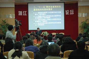 1月5日晚,开云官网“创新创业,科学发展” 论坛举办第七次专题报告会,省委教育工委委员、办公室主任褚子育应邀前来解读《浙江省高等院校设置“十一五”规划》。校、院处理论学习中心组成员,副高职称以上人员,系主任,各民主党派负责人参加报告会。报告会由鲁林岳院长主持。
