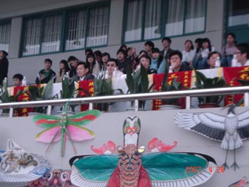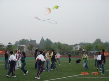 接着,省风筝协会副主席带领的风筝放飞表演队进行了友情表演,由他们亲手设计制作的迎奥运“中国印”风筝有近50平米大,而另一个“中国龙”风筝则长达60米,都曾经在去年的南通全国风筝精英赛中获得过第一名,尽管现场风力微弱,但精心设计的造型,加上教练们高超的放飞技术,风筝毫不费力地稳稳飞上了天空,精彩的表演让人大开眼界,折服了在场的每一位观众。