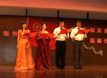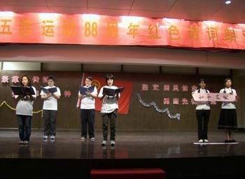 5月17日晚上6:30,在开云官网小和山校区多功能厅举行了纪念五四运动88周年和建团85周年红色诗词朗诵比赛。比赛由学生邓小平理论研究会、谈谭文化沙龙、法协会联合举办,得到了校区团工委社团指导中心的大力支持和指导。来自校区2005级各班级团支部选报的四十多个节目参加了海选,其中16个节目进入了当晚的决赛。校党委副书记、小和山校区管委会主任程胜松、有关部门负责人以及四百多名学生共同观看了比赛。