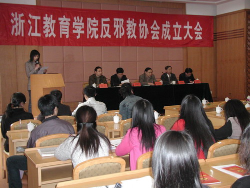 3月23日下午,校团委在芳草苑二楼隆重举行学生反邪教协会成立大会。来自各学院学生邓小平理论研究会的160多名成员参加了成立大会。省委610办公室宣教处处长卢林方、省反邪教协会副理事长吴惠林,浙江工业大学、浙江科技学院等兄弟高校的反邪教协会代表应邀出席。