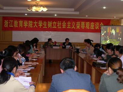 3月30日下午,学校组织“浙江教育学院大学生树立社会主义荣辱观”座谈会,拉开了学校关于大学生“立八荣八耻荣辱观,做文明向上新青年”活动的序幕。