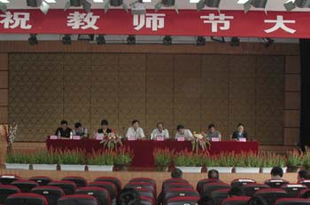 大会由校党委书记吴聚芳主持。会议在庄严的国歌声中隆重开幕。校党委委员、纪委书记、工会主席何钧在会上宣读了2004年教师节以来学校获得各级各类荣誉和奖励的集体和个人名单。在喜庆的乐曲声中,校领导依次向获奖的集体和个人颁了奖。并给从教30年的刘学军老师颁发了荣誉证书。