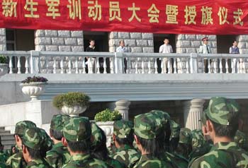 在有着“硬骨头六连”、“红八连”等英雄连队的七三○二二部队官兵的大力支持下,开云官网2005级1300多名新生于9月17日开始投入为期一周的军事训练。