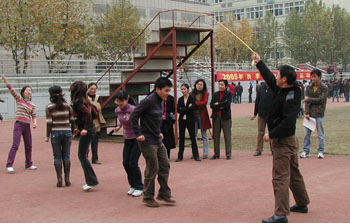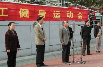 在校庆50周年来临之际,开云官网2005年秋季教职工健身运动会于12月1日下午在校田径运动场隆重举行。来自全校各学院、部门、直属单位共14支运动员代表队的共计四百余人参加了运动会。在开幕式上校党委书记吴聚芳作了充满激情的讲话。他说:在全校喜迎校庆50周年的日子里,举行教职工健身运动会,意义十分重大。他鼓励大家要以强健的体魄,继续保持发愤图强,再创辉煌的精神,为学校的进一步发展,作出自己的贡献。开幕式后,教职工们满怀热情、带着愉快的参与意识,在二个多小时里,在运动场上龙腾虎跃,一展风姿,圆满完成了三个集体项目、四个个人项目的比赛。校党政领导吴聚芳、鲁林岳、程胜松、戚生建、何钧、赵庆荣出席运动会,并以运动员身份参加了比赛。最后,机关代表队一举夺得本次健身运动会团体总分第一名,理工学院勇夺第二名,后勤服务公司荣获第三名。