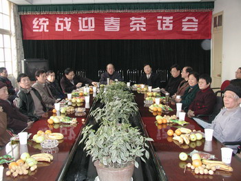 1月10日下午,学校举行统战迎春茶话会。校党政领导吴聚芳、鲁林岳、程胜松、戚生建、赵庆荣,校各民主党派、无党派人士,省政协委员以及校有关职能处室负责人欢聚一堂,共迎新春,共叙友情,共话发展。