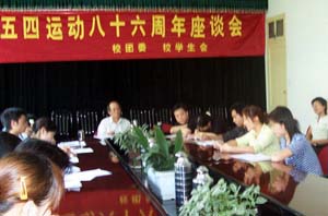 校党委书记吴聚芳在听取了学生的座谈后发表讲话。他首先代表校党委和行政向全校青年朋友致以节日的问候。他说,五四运动是我国近现代史上的一件大事,是旧民主主义革命转向新民主主义革命的转折点,“五四”高举的爱国主义大旗,鼓舞了一代又一代的青年,在中国共产党的领导下,为社会主义现代化建设作出了贡献。当代青年、尤其是当代大学生,学习、继承、弘扬“五四”精神,就是要有振兴中华的使命感、责任感,发愤学习创业、立志成才报国;就是要按照党的教育方针,从思想上、政治上、学习上、业务上全面提高自己的素质,真正成为合格的社会主义事业建设者、接班人,为中华民族的振兴,为国家、社会的繁荣富强作出积极的贡献。吴书记强调,我们一向反对的是日本右翼势力,反对的是日本军国主义,学生对日本政府的倒行逆施行为的激愤反应是完全正当的。但同时,我们应该要冷静、理智、合法、有序地表达我们的爱国热情,爱国就要守法,要维护社会的稳定,作为青年学生,要做到不信谣、不传谣、决不参加未经批准的非法游行。