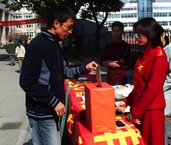 为帮助一位身患严重血液病的两岁孩子——小雷镖,重燃其稚嫩的生命,11月18日中午,校团委青协、理工学院爱心社及02物理班联合在全校范围内发起了一场大型“爱心募捐”活动。全校教职工及广大学生都非常同情小雷镖的遭遇,纷纷伸出援助之手。吴聚芳、王建华等校领导带头捐款。最为感人的是,校外的一位老奶奶专门赶到我们的募捐地点为小雷镖捐款,附近学校的学生也闻讯赶来……