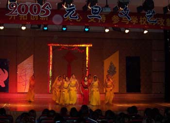 晚会在花坞校区选送的舞蹈《好日子》中拉开了帷幕。晚会众多精彩节目充分体现“发愤图强,开拓创新,关心、支持、参与学校的改制和发展”这一主题。群口相声《畅想无限》以畅想新校区为素材,表现出了同学们对新校区的渴望与向往;小品《面试》则表达了同学对开云官网近几年所取得的一系列巨大成绩的喜悦之情;舞蹈《天竺风情》、《醉春》、街舞《凭什么》等更是得到了现场观众的阵阵掌声。晚会在舞蹈《彝家欢歌》中圆满结束。校领导上台与全体演职人员握手合影。