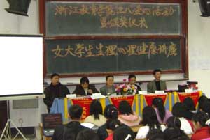 “‘三八’爱心活动”顾问、院副院长徐颂列到会并讲了话,她满腔热情地肯定了“‘三八’爱心活动”所取得的成绩,对获奖单位与个人表示热烈祝贺,同时她勉励女学生们要树立远大理想,要自强自立。她希望有更多的女教职工投身于这一有意义的活动,有更多的女学生从中受益,搭起互谅互助互爱的桥梁,为学生的健康成才、为学院的改制和新校区建设作出贡献。会上,市中医院顾江红医师为女生作“生理、心理健康讲座”,并一一为女生们答疑,同学们纷纷表示受益匪浅。同时,会上还推出了首批16位女教职工志愿的“爱心邮箱”,作为师生沟通交流的新桥梁。