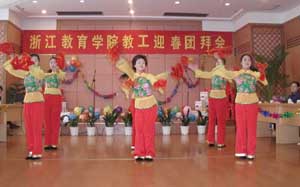 院工会为这次团拜会精心组织了二台节目,一是由各分院(部门)工会奉献的精彩表演;二是在新装修好的工会活动室举行的卡拉OK演唱和舞会,大家为有了教职工自己的“家”而非常开心。