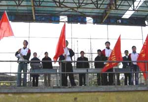 综合办主任祝炜平老师在仪式上勉励大家要弘扬雷锋精神、“团结、勤奋、求真、务实”的花坞精神及“奉献、友爱、互助、进步”的青年志愿者精神,认真务实地做好志愿者工作,要真正到社会和同学需要的地方中去,以团结友爱、助人为乐的道德修养,以追求进步、刻苦钻研的学习态度,以尽职尽责的实干精神,为青年志愿活动贡献自己的力量。