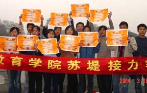 2004年3月18日下午,浙江教育学院人文分院在西湖苏堤举行了一场接力赛。