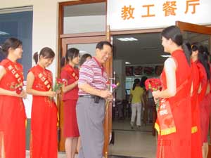 八位女生身着礼仪红装,手捧鲜花,面带微笑,为每一位进出食堂的老师送上鲜花,并道一声最诚挚的节日问候。
