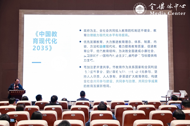 下午的专场报告会设有高等教育、基础教育、学前教育和教育学术媒介四个专场,几十位来自全国各地的教育专家,分别围绕“‘加快推进高等教育治理体系和治理能力现代化’高峰论坛暨《中国大学校长报告(2020)》发布会”“加进推进基础教育治理体系和治理能力现代化的理论与实践”“学前教育治理的顶层制度设计与学前教育立法”“追求齿轮效应 赋能教育创新——‘治理视角下教育类学术期刊的可持续发展路径’主题沙龙”等主题,就教育治理现代化等展开深入研讨。