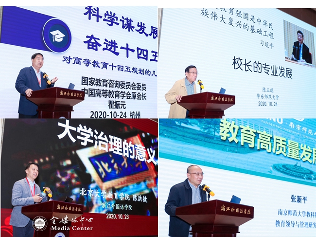 主旨报告环节,瞿振元、陈玉琨、陈洪捷、张新平等专家分别以《对高等教育“十四五”规划的几点思考》《校长的专业化发展》《大学的治理意义》和《教育高质量发展之探究》为题作主旨发言。
