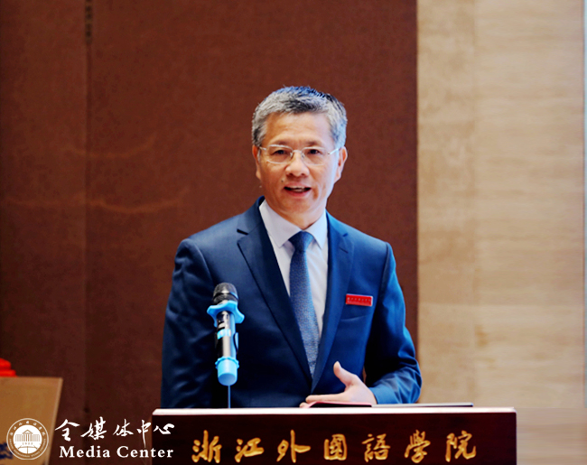 韩平代表浙江省教育厅对中心的成立、《回望:大学校长口述》新书的发布表示祝贺。他说,浙外已建设成为一所专业布局科学合理、特色优势较为明显的本科高校。学校积极服务“一带一路”建设和我省开放发展战略,依托学科专业特色,集聚人才智力优势,大力推进国别区域研究和新型智库建设,已经结出了累累硕果。中心的成立符合当前的教育研究现状,符合浙江省的教育发展状况。他表示,将一如既往地关心、支持浙外的发展,支持浙外教育治理研究中心的人文社科研究和智库建设。希望中心不断提升在全国乃至国际相关研究领域的话语权和影响力,努力建成国内一流的高水平智库。