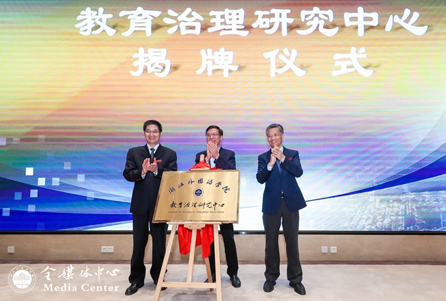 在成立仪式上,张环宙宣读中心成立批复文件。学校决定成立教育治理研究中心,宣勇任主任。