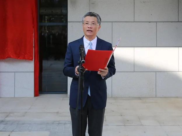 10月31日上午8:30,弘文馆一楼东侧彩绸高挂,喜气洋洋,浙外人欢聚阶前,共同庆贺校史馆开馆。校党委书记宣勇、校长洪岗,老领导姚成荣书记、鲁林岳校长,党委副书记赵文波,副校长赵庆荣、张环宙,党委委员,党委组织部部长、统战部部长,党委宣传部部长徐勇出席仪式。开馆仪式由赵文波主持。