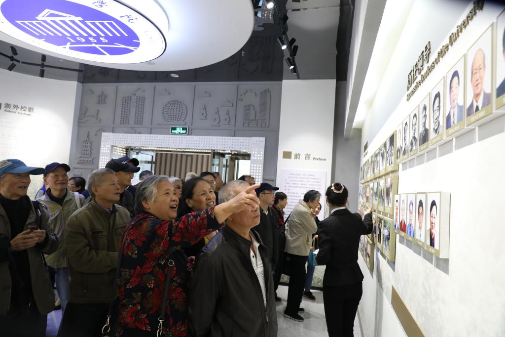 会后,老同志们兴致勃勃地参观了校史馆。在校史馆里,老同志们驻足良久。一幅幅生动的历史图片,一件件泛黄的历史资料,勾起老同志们对峥嵘岁月的无限回忆。他们时而指点熟悉的历史画面,时而评说过往的奋斗岁月,虽已白了头花了眼,但他们还是认真阅读着展板上的每一行字、每一张图。当他们看到当前学校事业发展取得的成绩和未来愿景时,不禁赞叹不已:“学校发展真的越来越好了,现在的学校就是一个美丽的大花园。”