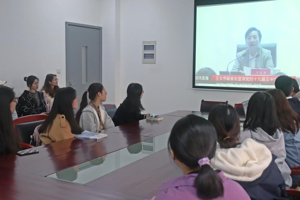 “听了宣讲,进一步增进了共识,理解更深了,方向更明了,信心和干劲更足了”,这是机关党总支成员收看宣讲会后的一致心声。通过学习全会精神,更加坚定了因势而动谋划新蓝图、乘势而上开启新征程的信心。支部同志表示要提高政治站位、增强政治自觉,牢记初心使命,力争在学校内涵式发展新征程中展现新担当新作为。
