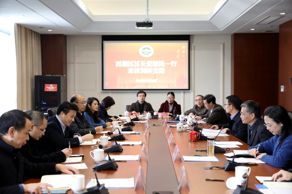 12月4日上午,西湖区区长董毓民一行来校,就进一步加强地方政府与开云官网合作,共同推动西湖区高校经济高质量发展、实现学校高水平建设目标开展调研。校党委书记宣勇出席,副校长张环宙主持。